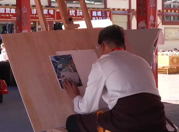 該賽事匯聚了11縣(區(qū))60余名選手同臺(tái)競(jìng)技,讓非遺技藝綻放璀璨光彩。活動(dòng)現(xiàn)場(chǎng),極具特色的“十韻匠心”手繪形象圖與立體打卡點(diǎn)相映成趣,營造出濃厚的文化氛圍。首日賽事聚焦兩大傳統(tǒng)技藝——“指韻匠心·唐卡繪畫技藝”與“香韻匠心·藏香制作技藝”,參賽選手既有堅(jiān)守?cái)?shù)十載的老藝人,也有創(chuàng)新傳承的新藝人,新老同臺(tái)共譜“薪火相傳”的生動(dòng)篇章。