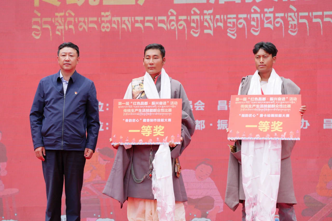 首日賽事中,貢覺縣仁青多吉、江達(dá)縣旺扎、貢覺縣白瑪旺秋分別獲得唐卡繪畫比賽前三名,察雅縣西熱扎巴、貢覺縣西繞尼瑪、貢覺縣西繞分別獲得藏香制作比賽前三名。