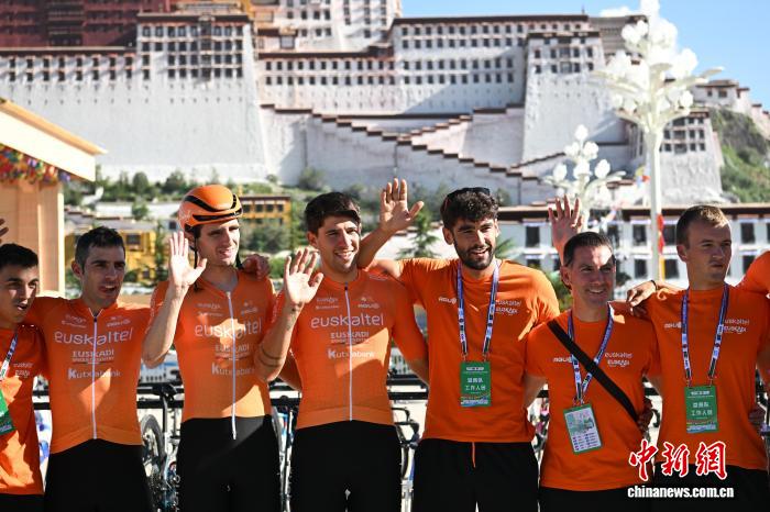 圖為開幕式上巴斯克電信職業(yè)隊隊員在布達拉宮廣場合影留念。貢嘎來松 攝