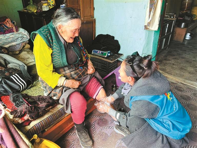 清晨的陽光灑在林周縣春堆鄉(xiāng)卡東村的土路上,林周縣民政服務站工作人員旦增旺姆背著裝滿蔬菜和藥品的布袋,熟門熟路地走進仁增拉卓老人的院子?!鞍尷玻裉旖o您帶了新鮮的蘿卜,再把降壓藥給您續(xù)上。”83歲的仁增拉卓顫巍巍迎上來,拉著旦增旺姆的手笑得眼角堆起皺紋——這樣的清晨探望,早已成為老人日常生活里的“定心丸”。