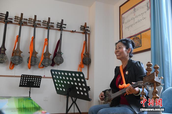 圖為民次旦卓瑪在八一社區(qū)老年活動(dòng)中心學(xué)習(xí)扎念琴。貢嘎來松 攝