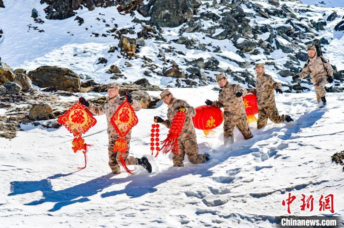近日,西藏軍區(qū)標沙拉錯哨點官兵們喜迎遠道而來的年貨,有牛肉、羊肉、各種蔬菜水果等,送菜的隊伍還給他們帶來了紅燈籠、中國結、福字等,萬象更新的新年,哨所官兵們堅守在這里,守護萬家燈火。