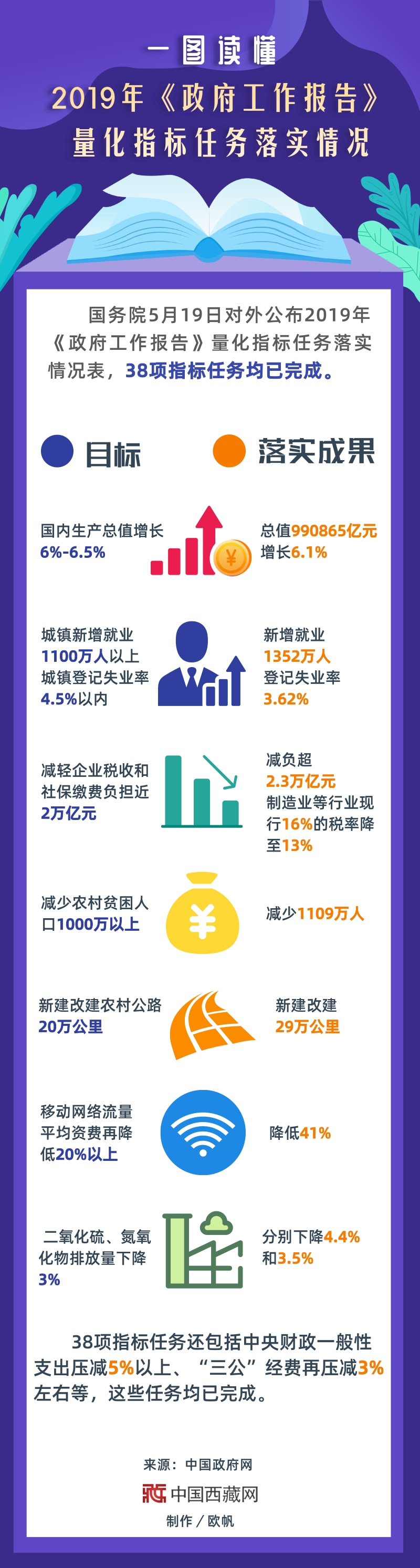 一圖讀懂2019年《政府工作報告》量化指標(biāo)任務(wù)落實情況