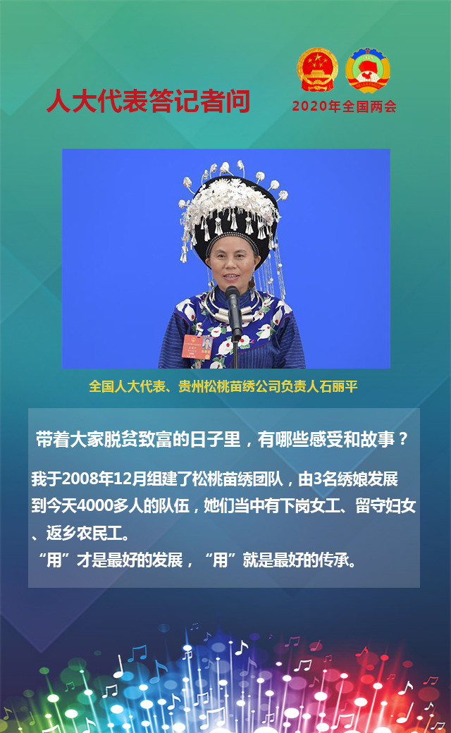 全國(guó)人大代表、貴州松桃苗繡公司負(fù)責(zé)人石麗平