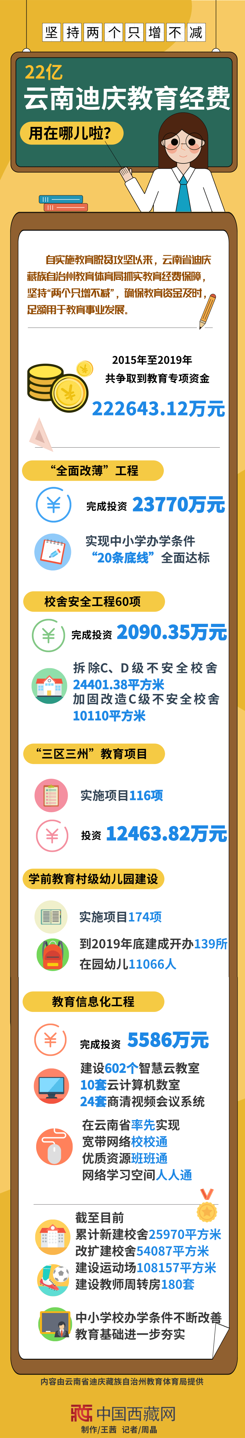 一圖看懂|堅(jiān)持“兩個(gè)只增不減” 22億云南迪慶教育經(jīng)費(fèi)用在哪兒啦?