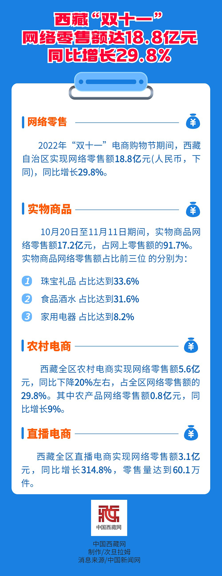 西藏“雙十一”網(wǎng)絡(luò)零售額達(dá)18.8億元 同比增長29.8%