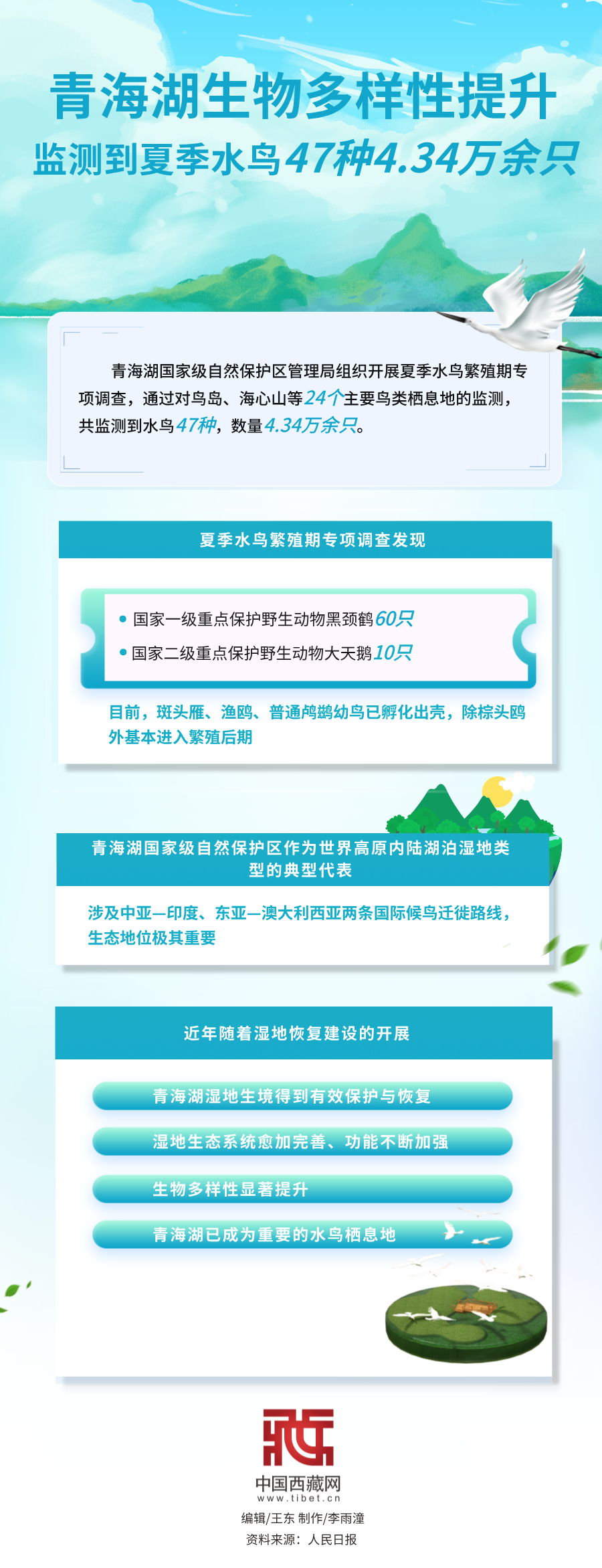 海報(bào)|青海湖生物多樣性提升 監(jiān)測到夏季水鳥47種4.34萬余只