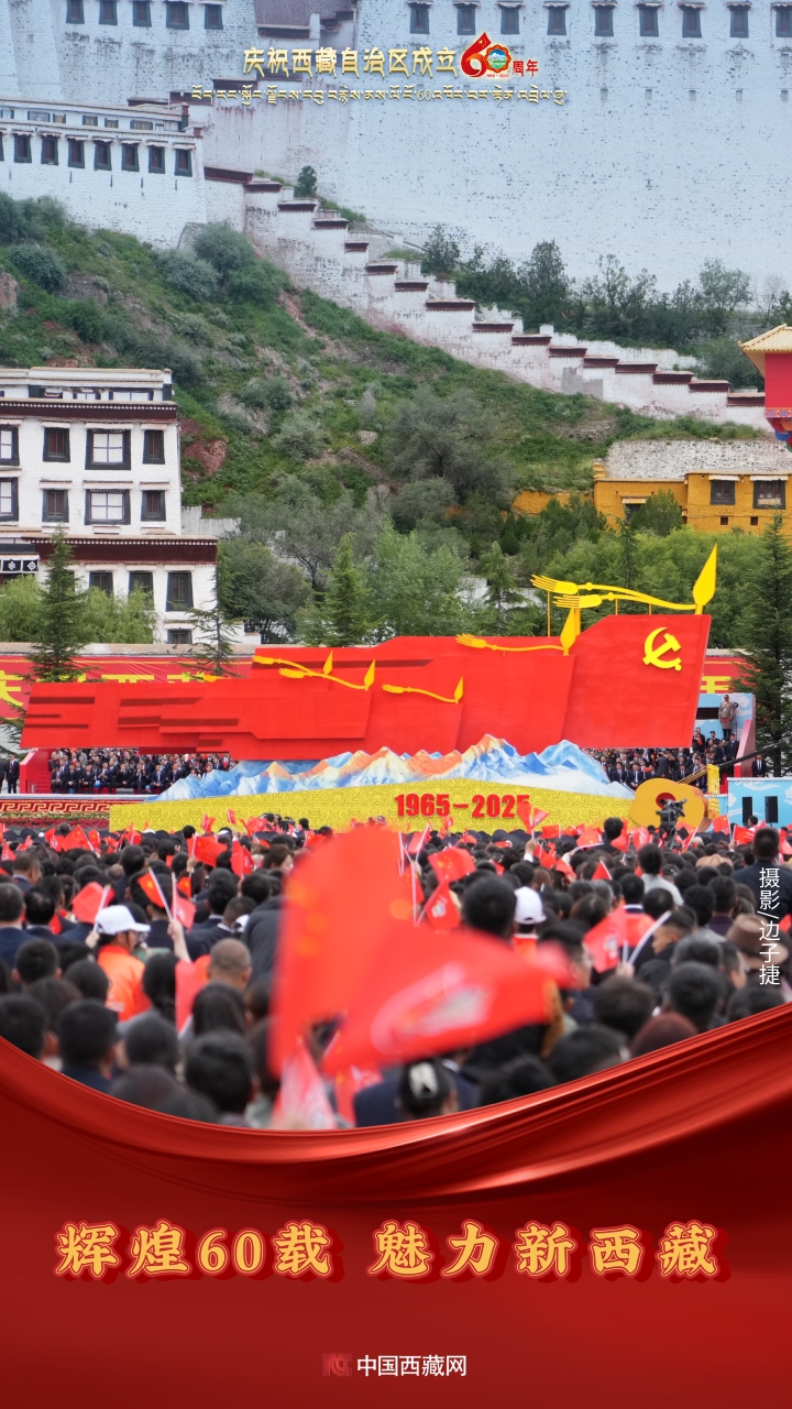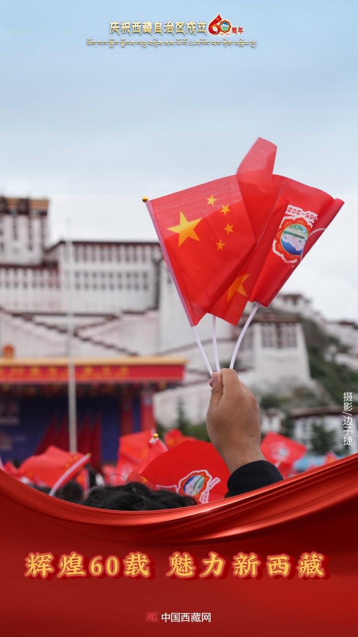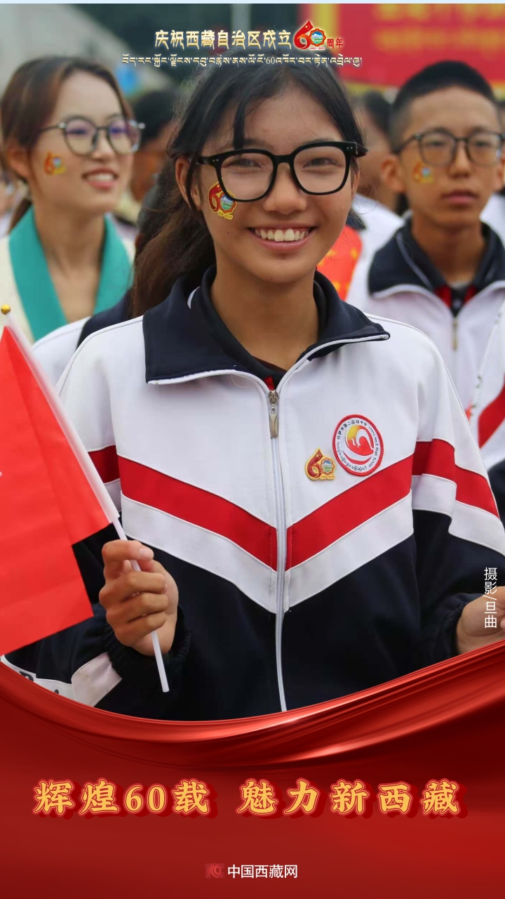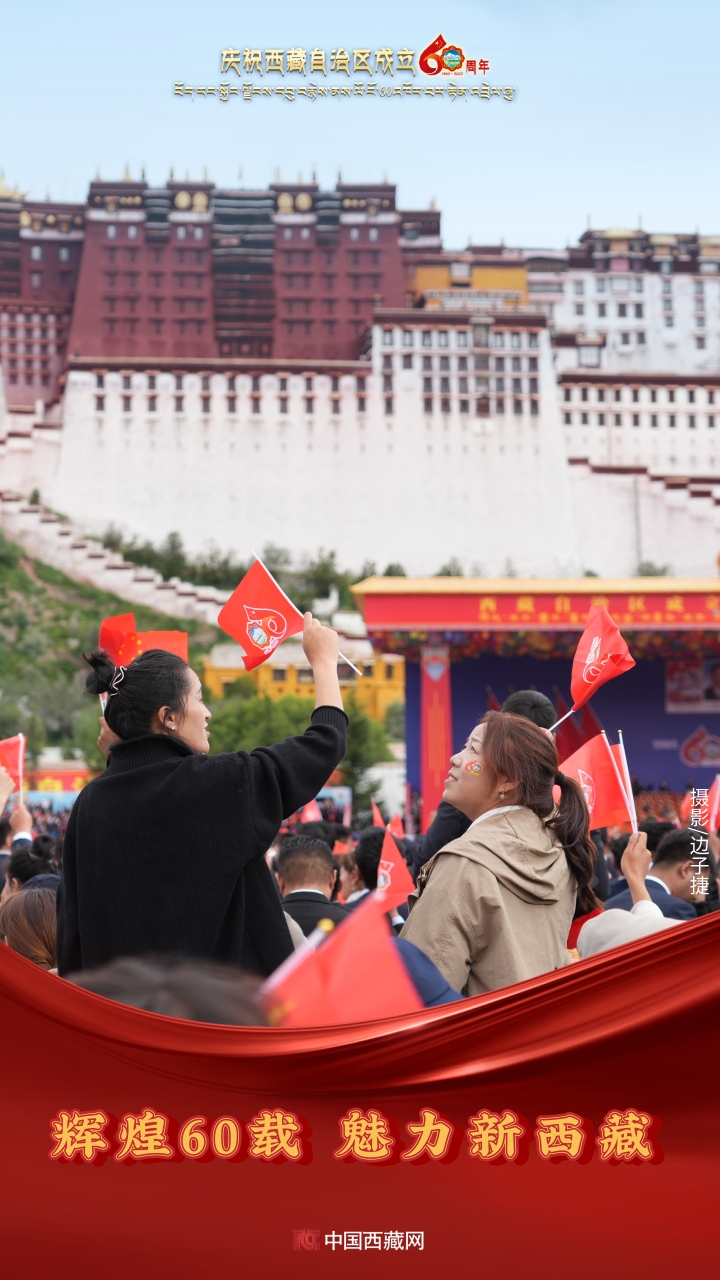 六十年風(fēng)雨兼程,六十年春華秋實(shí),都在這一刻化作人們真摯的笑容與熱烈的歡呼。讓我們祝福祖國!祝西藏自治區(qū)繁榮昌盛,祝西藏各族人民幸福安康?。ㄖ袊鞑鼐W(wǎng)攝影/邊子捷 旦曲 趙振宇 制作/王茜)