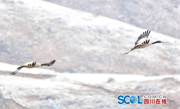 黑頸鶴是世界上唯一生長和繁殖在高原的鶴。每年3月至11月,在阿壩州若爾蓋、紅原兩縣,總能見到成群的黑頸鶴在此繁衍棲息。其中,有“中國黑頸鶴之鄉(xiāng)”稱號的若爾蓋縣現(xiàn)有1000多只黑頸鶴,是世界上黑頸鶴分布數(shù)量最多、繁殖地面積最大的區(qū)域。