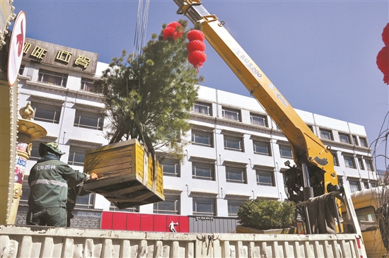 日前,西藏拉薩市城關(guān)區(qū)潔達園林公司組織工作人員對宇拓路上可移動的景觀花箱進行吊裝移除,為下一步更換新的綠化植物做準備。