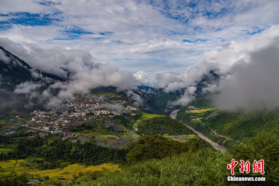 走進(jìn)墨脫,總會(huì)遇見繚繞的云霧,墨脫縣城就隱逸在這縹緲的云霧中,宛若仙境一般。圖為云霧繚繞的墨脫縣城。 何蓬磊 攝
