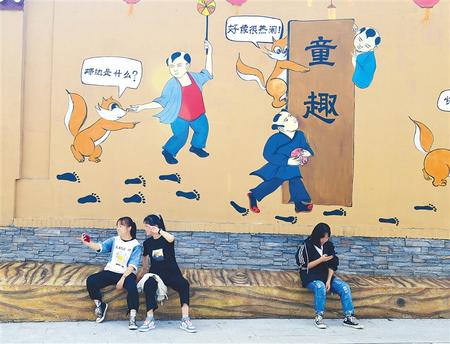 古占村別具一格的庭院壁畫吸引游客拍照留念。