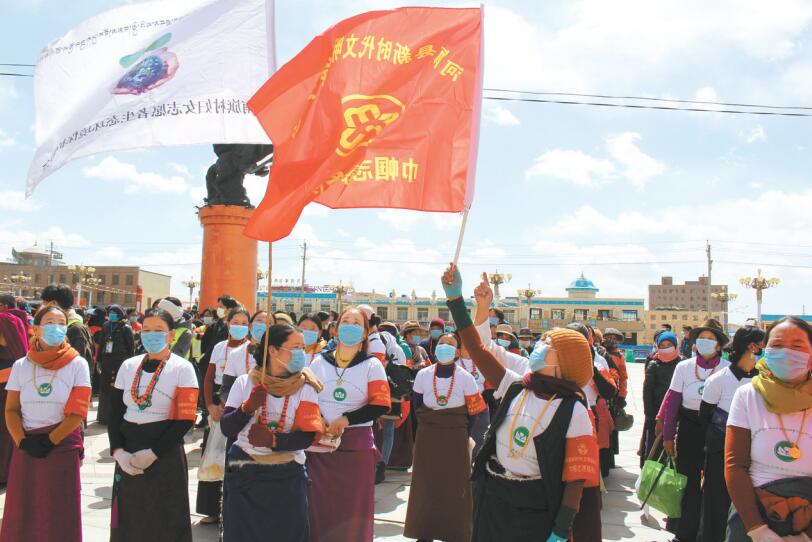 河南縣巾幗志愿服務隊開展環(huán)境整治現(xiàn)場。 攝影:公保安加