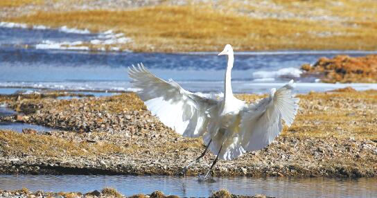 四月中旬的班德湖雪覆冰封,成千上萬(wàn)只斑頭雁棲息在湖心島嶼,它們用喙銜來(lái)草枝、莖葉、干藻、絨羽和碎布,營(yíng)造御寒的巢穴。江源,是鳥類的故園,凍土之上的酷寒之地,成群的雌雁用自己的體溫孵化雛鳥,它們啾啾的鳴叫回蕩在無(wú)際的曠野,這傲立天地間的“驚鴻照影”,不由得我們不為之嘆服!