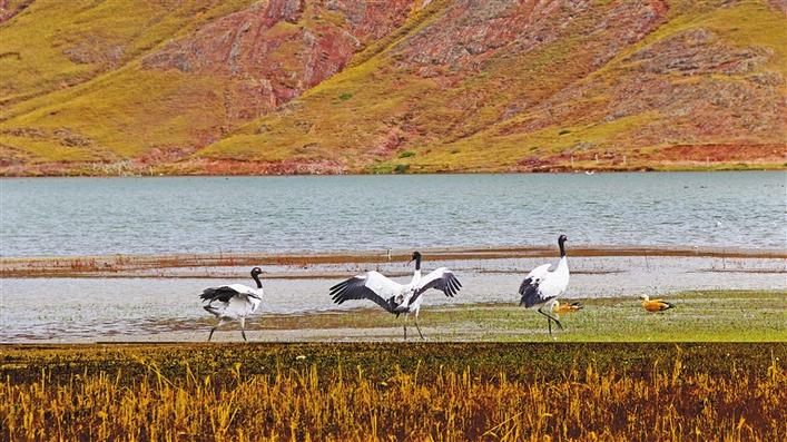 近年來,林周縣認(rèn)真開展自然保護區(qū)管理和野生動物保護工作,通過多年的努力,以黑頸鶴、斑頭雁、赤麻鴨、白唇鹿等為代表的野生動物如今在這片綠色的沃土上自由棲息,譜寫了人與自然和諧共處的動人詩歌。
