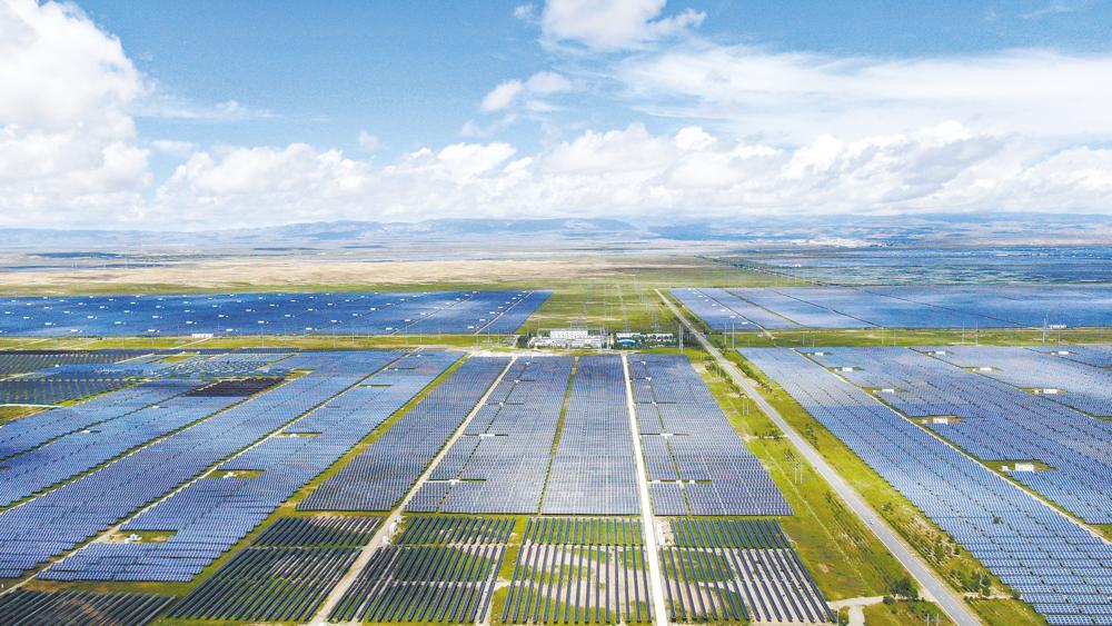 海南藏族自治州共和縣塔拉灘綠色產(chǎn)業(yè)發(fā)展園區(qū)拍攝的光伏電站(無人機照片)。 新華社記者 張龍 攝