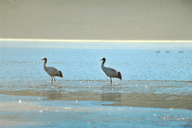 達孜區(qū)境內(nèi)的候鳥悠閑踱步。