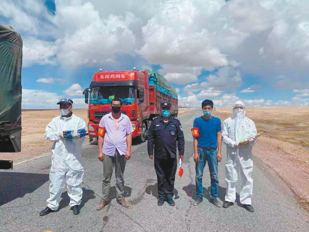 五道梁保護(hù)站的隊(duì)員們攔住過(guò)往車輛,為前往卓乃湖產(chǎn)仔的藏羚羊打開生命通道。