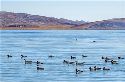 羊卓雍錯(cuò)自2014年被納入國(guó)家良好湖泊生態(tài)環(huán)境保護(hù)試點(diǎn)工程項(xiàng)目以來(lái),羊卓雍錯(cuò)周邊生態(tài)環(huán)境持續(xù)向好,棲息繁衍的野生動(dòng)物數(shù)量逐年增多。這是近日拍攝的羊卓雍錯(cuò)湖面上的水鳥(niǎo)。新華社記者 孫非 攝