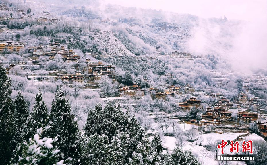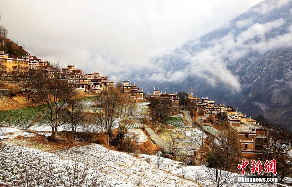 圖為丹巴藏寨披上一層“白紗”。 吉進(jìn) 攝