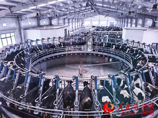 下午5點(diǎn),正是擠奶時(shí)間。養(yǎng)殖場(chǎng)早就拋棄傳統(tǒng)人工擠奶,取而代之的是現(xiàn)代化操作車(chē)間。全自動(dòng)轉(zhuǎn)盤(pán)式擠奶設(shè)備,運(yùn)用全自動(dòng)糞污處理系統(tǒng)對(duì)奶牛的糞尿進(jìn)行減量化、無(wú)害化、資源化處理,形成了“奶牛養(yǎng)殖—沼液還田—飼草種植”的綠色循環(huán)養(yǎng)殖模式。