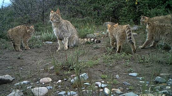 荒漠貓對環(huán)境、食物的要求非常嚴格。2020年8月,祁連山國家公園青海片區(qū)監(jiān)測到“一家五口”荒漠貓同框的畫面。祁連山國家公園青海省管理局啟動荒漠貓專項調(diào)查以來,在國家公園范圍內(nèi)頻繁記錄到荒漠貓活動畫面,而拍攝到5只荒漠貓同框的畫面非常罕見。