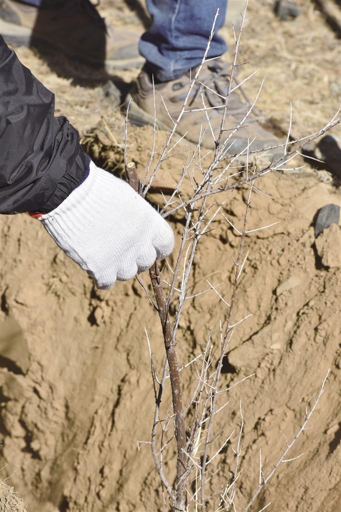 活動(dòng)現(xiàn)場,大家自覺兩三人一組,分工合作,干勁十足,一起揮鍬培土、放置樹苗、提桶澆水、端正樹苗……每個(gè)環(huán)節(jié)都做得認(rèn)真到位,銜接有序,經(jīng)過緊張的勞動(dòng),原本荒涼的土地上呈現(xiàn)出勃勃生機(jī)。