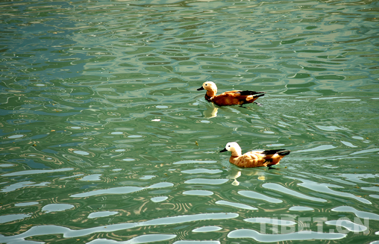 圖為拉薩市太陽(yáng)島附近河面上游弋的水鳥(niǎo) 攝影:王媛媛