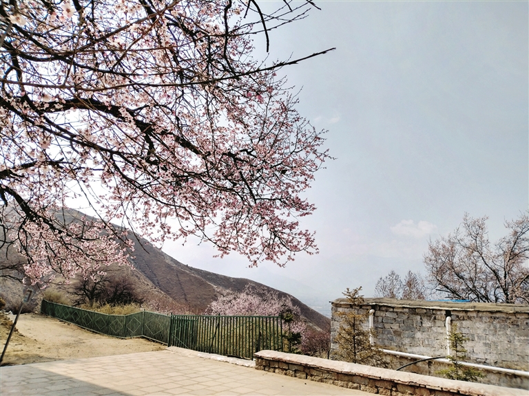 “人間四月芳菲盡,山寺桃花始盛開?!崩_帕崩崗寺海拔3900米,周邊擁有許多老桃樹,四月桃花開得極盛,印證了詩句里的景象,美不勝收。帕崩崗,藏語的意思是“巨石上的宮殿”,位于遠(yuǎn)離拉薩市區(qū)喧鬧的北郊山麓。這里不僅可以俯瞰整個拉薩城,也是被人們所忽略的“世外桃源”。如今帕崩崗寺的桃花盛開了,沿著山間道路,看到桃花數(shù)量越來越多,有的含苞待放,好像下一刻就會怒然開放;有的悄然綻放,賦予整個世間春季的浪漫。