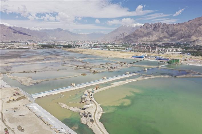 拉薩河河勢控導(dǎo)工程(濱江花園段)工程技術(shù)部主任劉誠介紹,拉薩河河勢控導(dǎo)工程(濱江花園段)由中國水電基礎(chǔ)局承建,總投資4.4億元,壩址位于拉薩河城區(qū)段。該工程于2020年5月25日進(jìn)行開工準(zhǔn)備,9月2日正式開始主體工程施工任務(wù)。工程屬于拉薩河城區(qū)段自下而上的第一座攔河蓄水建筑物,位于2#閘下游約1.635千米。工程包括氣盾壩、調(diào)節(jié)閘、導(dǎo)流墻、魚道和充排氣泵房等部分。