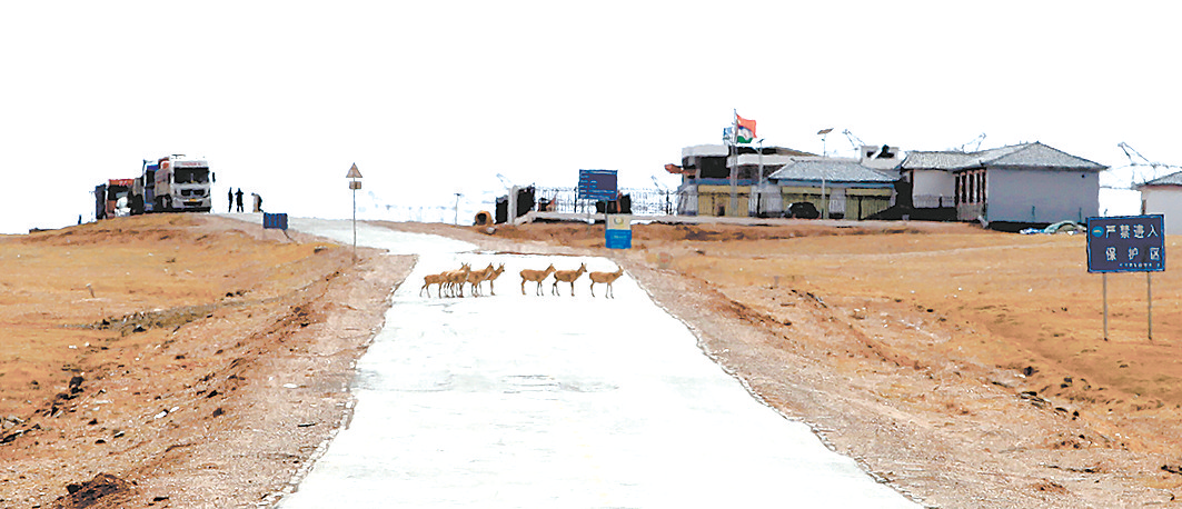 藏羚羊已習慣了火車從身邊呼嘯而過。