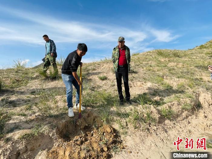 圖為工作人員在演示挖檸條坑?!⊥趿漳?攝