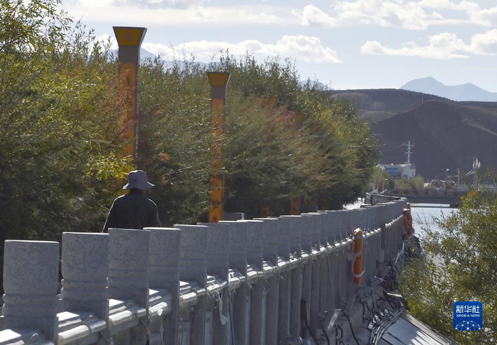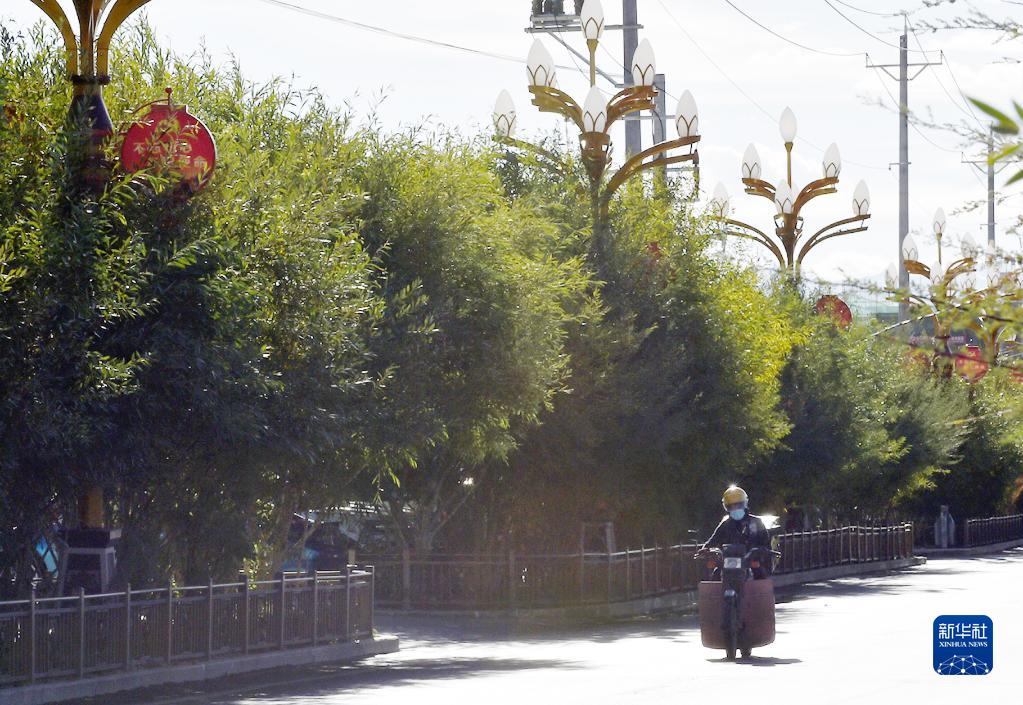 西藏阿里獅泉河鎮(zhèn)道路旁邊綠樹(shù)成蔭(9月19日攝)。新華社發(fā) (索朗羅布 攝)