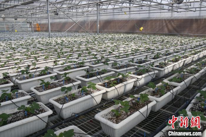 圖為園區(qū)內(nèi)草莓種苗?!∑蠲?攝
