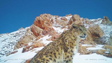 這些障礙沒(méi)攔住姜楠一行,約3個(gè)小時(shí)后,他們抵達(dá)了第一個(gè)雪豹觀測(cè)點(diǎn)。姜楠蹲下,檢查紅外相機(jī)拍攝到的畫面,確認(rèn)是否有野生動(dòng)物出現(xiàn)。相機(jī)完好無(wú)損并拍到雪豹,是最為理想的狀態(tài),但相機(jī)被毀壞也是常有的事。當(dāng)天,她的同事負(fù)責(zé)另一處觀測(cè)點(diǎn),上山后發(fā)現(xiàn)相機(jī)壞了,只能原路返回,再跑一趟。