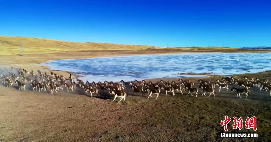 近日,在地處黃河源頭的青海省瑪多縣黃河鄉(xiāng),當(dāng)?shù)啬撩袷状谓嚯x拍攝到大規(guī)模藏野驢種群。圖為藏野驢種群在草原上奔跑。 多太 攝