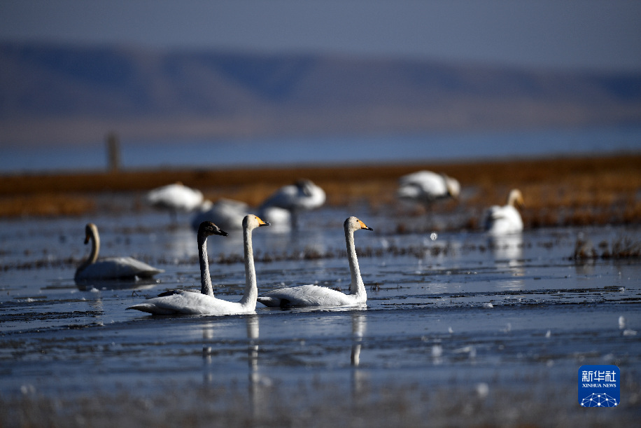 青海湖國家級自然保護區(qū)管理局局長何玉邦介紹,此次監(jiān)測到的大天鵝集中在青海湖泉灣濕地、生河口、切吉河口一帶,較上月增加410余只,較去年同期增加230余只。