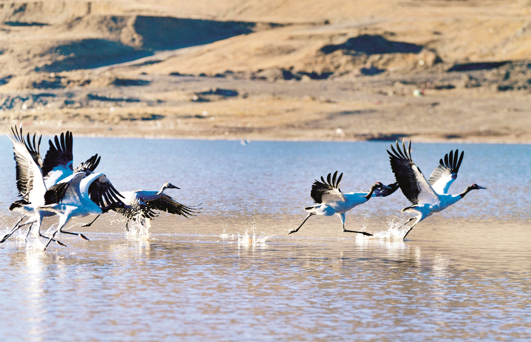 近日,來(lái)到拉薩市林周縣的黑頸鶴已達(dá)1500只左右,這里成為黑頸鶴越冬的樂園。