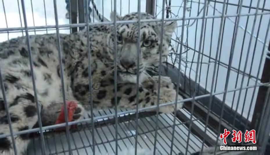 日前,青海玉樹藏族自治州玉樹市下拉秀鎮(zhèn)白瑪村生態(tài)管護員在巡山途中發(fā)現(xiàn)一只受傷的國家一級保護動物雪豹,雪豹雙后腿均有傷痕且無法站立。目前,受傷雪豹被運送至青海野生動物救護中心進行救治。