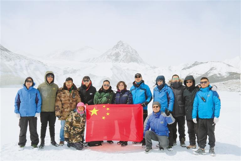 監(jiān)測科研人員在格拉丹東檢測點(diǎn)合影留念。