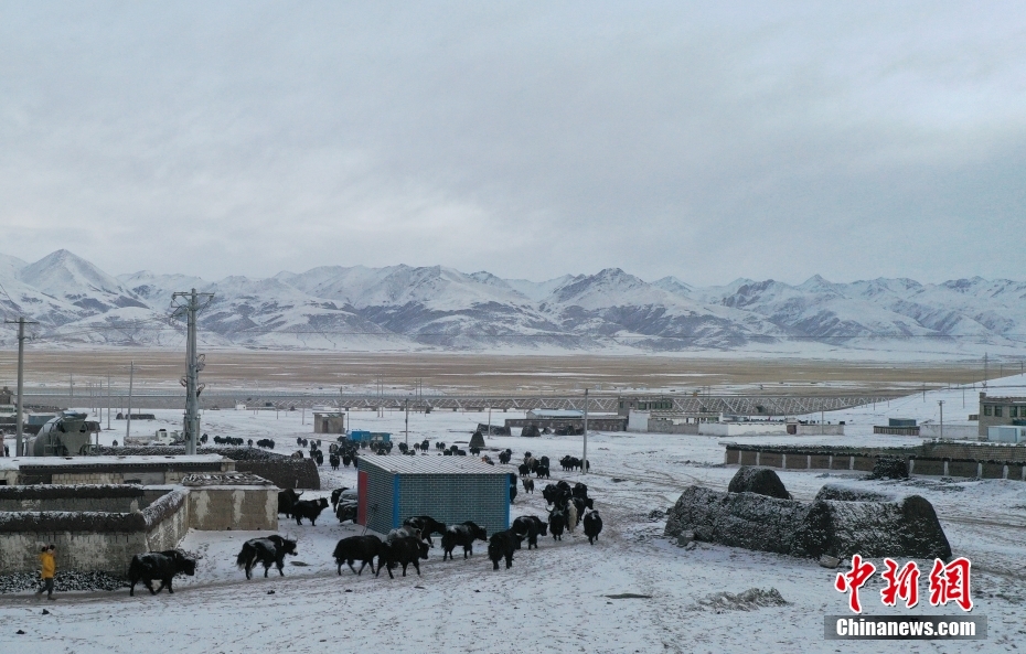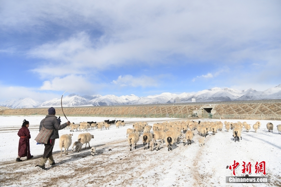 1月27日,當雄縣龍仁鄉(xiāng)烏達村牧民在雪中放牧。當雄縣位于西藏自治區(qū)拉薩市北部,距拉薩市區(qū)170公里?!爱斝邸?,藏語意為“天選牧場”,平均海拔約4200米,草場廣闊,土地肥沃。 中新社記者 貢嘎來松 攝