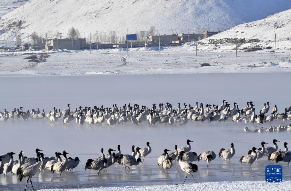 拉薩市林周縣為黑頸鶴投食 保障黑頸鶴安全越冬