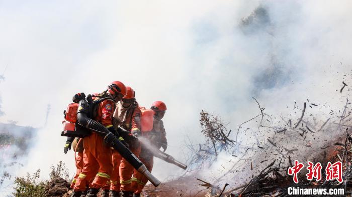 圖為3月2日,云南森林草原火災(zāi)應(yīng)急處置聯(lián)合實戰(zhàn)演練現(xiàn)場。 云南省森林消防總隊 攝