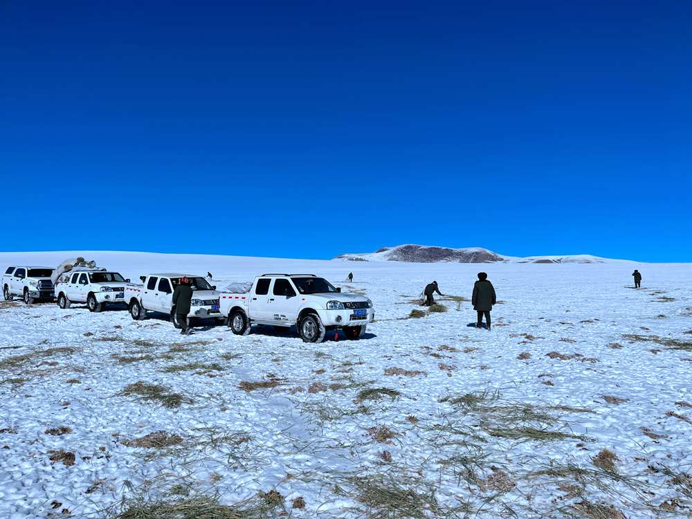 改則縣林草局工作人員把草料送到管護站,管理員們再把這些草料送到藏羚羊棲息比較多的地方。于是,接下來的兩天,工作人員們就一直在這片廣袤的草場上撒布草料,希望幫助藏羚羊們度過這個格外寒冷的冬天。前前后后,半個月下來,改則縣的工作人員撒出去十幾噸的草料,幫助很多藏羚羊度過了這個缺少食物的冬天。在改則縣,23個管護站,二百多名管護員,看管著十萬多平方公里的草場,他們對于轄區(qū)的草木生靈、萬水千山都很是熟悉。哪里常棲息著什么動物,他們多是信手拈來。