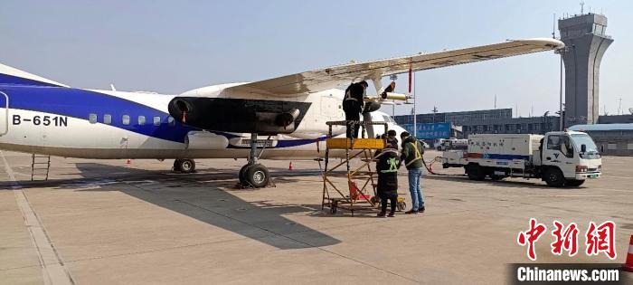 圖為國(guó)家增雨飛機(jī)新舟60(B-651N)在洛陽(yáng)機(jī)場(chǎng)開(kāi)展機(jī)載設(shè)備維護(hù)及任務(wù)系統(tǒng)升級(jí)工作。 甘肅省氣象局供圖