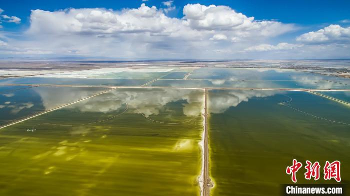 圖為無人機(jī)航拍格爾木市察爾汗鹽湖。 何啟金 攝