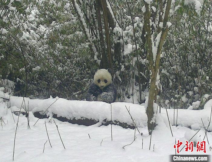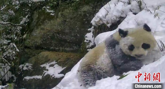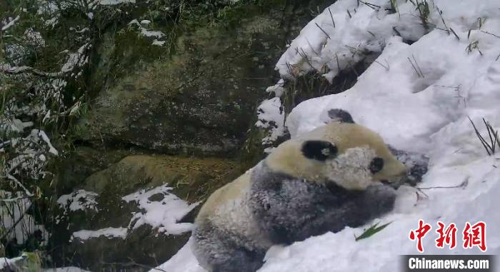 四川平武拍攝到野生大熊貓雪地撒歡畫面