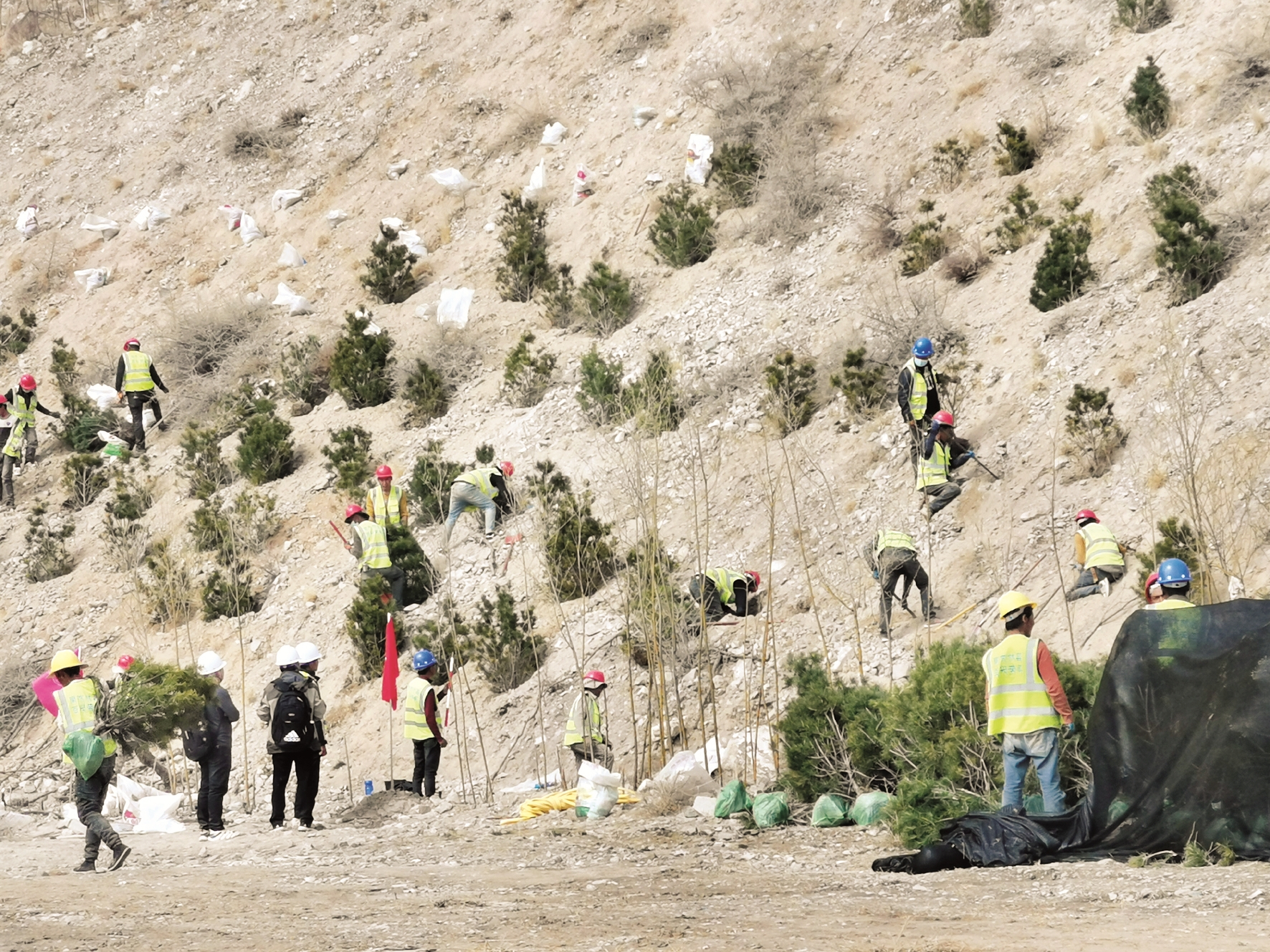 圖為3月24日,西藏國土生態(tài)綠化集團(tuán)有限公司植樹造林活動現(xiàn)場。 拉薩融媒體記者 滿文妍攝