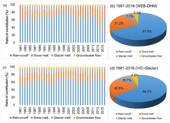 王磊表示,依托監(jiān)測網(wǎng)絡(luò)和其他多源數(shù)據(jù),研究團(tuán)隊(duì)生成了1981-2019年這38年內(nèi)雅魯藏布江流域高時(shí)空分辨率降水?dāng)?shù)據(jù),在此基礎(chǔ)上進(jìn)一步通過對比、綜合主流冰凍圈水文模型的徑流組分模擬,研究得出的結(jié)果顯示,雅魯藏布江流域(奴下水文站以上)新的降雨、融雪、冰川融化和地下水補(bǔ)給分別占總徑流的66%、21%、9%和4%。