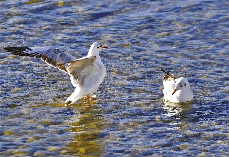 拉薩市拉魯濕地國(guó)家級(jí)自然保護(hù)區(qū)的水鳥(niǎo)(5月7日攝)。新華社記者 張汝鋒 攝